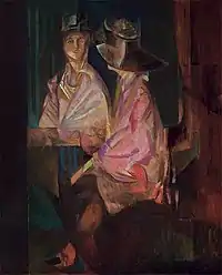 Georgy Yakulov's posthumous exhibition of works in Moscow could not be organized, as it turned out that there was not a single painting in the artist's studio after his death, and his entire creative archive was missing.[124] Yakulov had left about 100 of his paintings in Paris with Mikhail Larionov and Natalia Goncharova, but the French exhibition did not take place either, and Yakulov's paintings became the property of Goncharova's and Larionov's heirs after their death.[125] In 1968 A.K. Larionova-Tomilina donated 11 works by Yakulov to the Tretyakov Gallery.[126] A year before, the artist Rafael Kherumyan created the "Society of Friends of Georgy Yakulov" in Paris (whose members were Sonia Delaunay, spouses, art historians Valentina and Jean-Claude Marcade). In 1972, the Society acquired most of Yakulov's works from Larionov's heirs and donated them to the Art Gallery of Armenia.[125] In the 1930s, Robert Delaunay organized a committee to publish a monograph about Georgy Yakulov, which included P. Picasso, B. Sandrard, A. Glez, M. Chagall, S. Prokofiev, however the project was not implemented.[127][19]