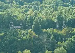 A vista of historic structures in Oil Creek State Park, seen from the Gerard Hiking Trail.