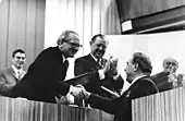 In 1960, he became the Secretary for Agriculture of the SED Central Committee.[1][3] From 4 July 1962, Grüneberg also served as the 'Minister for Coordinating Tasks in Agriculture' and was a member of the Presidium of the Council of Ministers in 1962/63.[1] Additionally, in 1963, he took charge of the Bureau for Agriculture at the Politburo, became a member of the Council for Agriculture and Food Economy, and from 1966, a member of the Presidium of the GDR Research Council.[1][4]