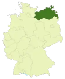 The Northeastern German Football Association league system is the regional association league system in the states of Berlin, Brandenburg, Mecklenburg-Western Pomerania, Saxony, Saxony-Anhalt and Thuringia and starts at level four of the German league system with the Regionalliga Nordost on top. The champions enter a promotion playoff along with the winners of the four other Regionalliga divisions and the Regionalliga Südwest runner-up for three promotions to the 3. Liga.
