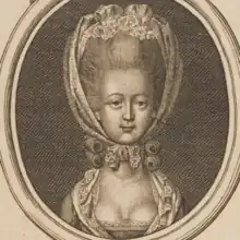 In 1781 an engraving of her and George Bodens with the title "The Bird of Paradise and Colonel Witwou'd"[1] and another print satirising her hats and dress were published.[5] She was nicknamed the "Bird of Paradise" because of her brightly coloured and outrageous clothes.[6]