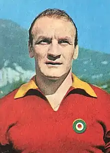Though he was not a native of Rome, during the 15 seasons he played in the capital city, he was nicknamed "Core de Roma" (Romanesco for Heart of Rome). In total he made 450 appearances with the giallorossi, a record which lasted for 38 years, until 31 January 2007, when Francesco Totti played his 451st match for the club. Most of his family that left Italy moved to Boston, Massachusetts.[2]