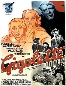 Gigolette is a 1937 French drama film directed by Yvan Noé and starring Florelle, Gabriel Gabrio and Rosine Deréan.[1] The film's sets were designed by the art director Jean Douarinou.
