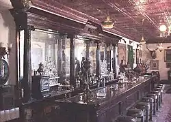 At Gila, Lyons built his headquarters. He converted the existing 12 rooms of the frontier hacienda into his residence and office. He added another 15 lavishly-furnished rooms for guests and entertaining. Attached to the living quarters or in separate buildings was a stable, barn, bunkhouse, store, post office, jail, foreman's house, and saloon. Lyon's bedroom featured a trapdoor where he could hide if necessary from his numerous enemies who might attempt to kill or kidnap him.[11]