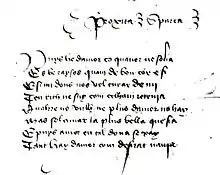 Manuscript facsimile of Puys he d’amor ço qu’aver ne solia by Gilabert de Próixita (the Proxita of the MS), labelled a sparsa, stand-alone stanza