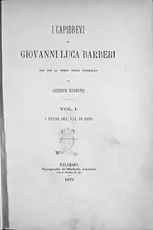 • G. Silvestri. I Capibrevi di Giovanni Luca Barberi. Società Siciliana per la Storia Patria, Tipografie Michele Amenta, Palermo 1879-1888, ristampa anastatica, Palermo 1985