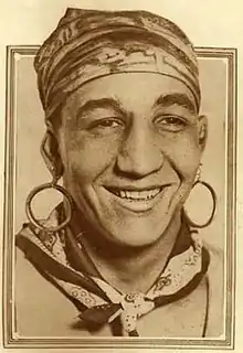 By the end of 1921, Daniels had amassed a fighting record of eleven wins, six losses and two draws. In March 1922 he won a heavyweight competition at Blackfriars, and in October of that year he was fighting at the Pioneer Sporting Club in New York. It was around this time that Daniels was introduced to James J. Johnston, a local boxing promoter. Johnston decided that Daniels needed a gimmick to sell himself to the public, and decided that he looked "like a gypsy". Johnston took Daniels to a Woolworths five-and-ten-cent store and dressed him in cheap bandanna headscarves and hooped earrings. Johnston dubbed him 'Gypsey Daniels', though the most commonly used spelling of his nickname was 'Gipsy'.[3] Daniels fought eight times in New York, including two contests at Madison Square Garden, before returning to Great Britain.[4]