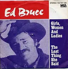 "Girl, Women and Ladies" is a song co-written and recorded by American country music artist Ed Bruce. It was released in November 1980 as the third single from the album Ed Bruce. The song reached No. 14 on the Billboard Hot Country Singles & Tracks chart.[2] Bruce wrote the song with his wife Patsy and Ron Peterson.