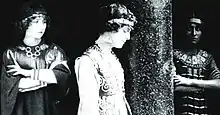 The sets and costumes were created by Duilio Cambellotti, who was Italy's most famous Art Nouveau artist and first had collaborated with Falena in 1906. Some of the inspiration for his designs came from ancient mosaics in Ravenna.[11] Some of the image compositions and actor postures were inspired by 19th-century representations of the ancient world by painters such as Lawrence Alma-Tadema, John William Godward and Dante Gabriel Rossetti.[12]