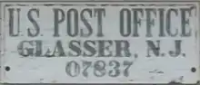 Glasser is an area within the Northwood section of the Borough of Hopatcong, in Sussex County, in the U.S. state of New Jersey. While not officially a municipality, the area was granted its own post office in 1933 by the United States Postal Service that was later assigned ZIP Code 07837. Currently the area contains a small US Post Office, several residential apartments and bungalows, and a restaurant and bar overlooking Lake Hopatcong. Nearby residents get their mail delivered to PO boxes at the Glasser Post Office.