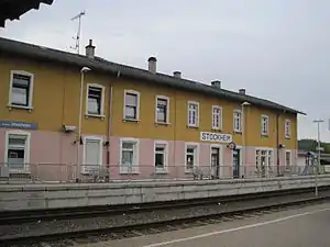 Glauburg-Stockheim station is a station on the Gießen–Gelnhausen railway in the town of Glauburg in the German state of Hesse. It is also at the end of the Nidda Valley Railway (German: Niddertalbahn) from Bad Vilbel. The Oberwald Railway (Oberwaldbahn) to Lauterbach began here from 1 October 1888 until 1 June 1984. The station is classified by Deutsche Bahn (DB) as a category 5 station.[1]