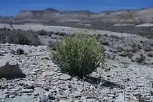 This mustard grows in the Uinta Basin on the Green River Formation, a geologic formation, in an area around the border between Duchesne and Uintah Counties in Utah. The substrate is a shallow layer of dry, alkaline, fine clay and white calcareous shale.[1][10] Rollins mentions that at the type locality the Green River Formation surfaces in a high mountain bluff in a layer only some 20 feet wide, but some three miles long; this species only grows in small clumps studding this specific strip of dirt all down its length, and not in the other soils left or right. The climate is extremely dry.[6] The area is a desert shrub or pinyon-juniper woodland plant community.[1][10] It grows at an altitude of 1555–1981 metres, on flat or very moderately sloping ground.[1] The area is sparsely vegetated, but other plants in the habitat include Barneby's catseye (Cryptantha barnebyi), which was apparently discovered by Rollins during his 1937 visit,[3][6] C. nana, C. grahamii, Yucca harrimaniae, Linum leptopoda, Mentzelia goodrichii, Gilia polycladon, Erigeron argentatus and Hymenopappus lugens. Cryptantha barnebyi, C. grahamii, the Mentzelia and Linum all appear to be similarly restricted to this area, or nearly so in the last case.[6] It flowers in May to July.[4] The plant is pollinated by several species of bees, likely including Dialictus perdifficilis, D. sedi, Evylaeus pulveris, Andrena walleye, A. prunorum and Halictus rubicundus.[12]
