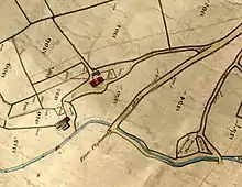 "The house consists of an entrance lobby, dining room 16 feet by 18 feet, drawing room 18 feet by 22 feet, kitchen and offices, 4 bed rooms and 3 servants rooms. Detached stabling for 5 horses, a coach house and an enclosed court."[3]