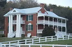 Glen Maury, also known as the Paxton Place and Elisha Paxton's house, is a historic home located in Rockbridge County, Virginia, near the independent city of Buena Vista. It was built between 1829 and 1832, and is a 2+12-story, brick dwelling. It sits on a high basement, made of native stone, and has a two-story rear ell addition. The front facade features a somewhat crude, two-story, Doric order Classical Revival portico with paired columns. The river side is dominated by a five-bay, two-story verandah with turned wooden posts and simple brackets. It was added about 1900.[3]