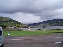 Glen Shira is named after the River Shira, which runs through the centre of the glen.[1] The river starts in north-east at 350 meter altitude, near the start of the River Fyne. Shira runs into the 5 MW Sron Mor (Big Nose) power station dam,[2] and then for about 7 miles down to and through Loch Dubh (Black Lake) at the base. From there, the waters flow into Loch Shira, a small inlet on Loch Fyne that, in turn, lends its name to the MV Loch Shira ferry.