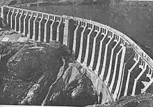 The Gleno Dam was a multiple arch buttress dam on the Gleno Creek in the Valle di Scalve, northern Province of Bergamo, Italy. The dam was built between 1916 and 1923 with the purpose of producing hydroelectric power. The middle section of the dam collapsed on 1 December 1923, forty days after the reservoir was filled, causing widespread flooding that killed at least 356 people.[1]