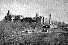 In 1882 Archibald was replaced as medical superintendent by Dr. Francis Marion Powell. At the time of his appointment the IIFMC consisted of the buildings of the Orphan's Home, a 160-acre (0.65 km2) farm, and an additional 20 acres (81,000 m2). In 1884 the Old Administration Building was constructed based on several principles of the "building as cure" Kirkbride Plan. Also, age restrictions were abolished with the creation of a new Custodial Division and by 1886 the institution was home to 259 people. Additional buildings were constructed as the grounds expanded and the resident population grew to 815 people by 1899.