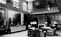 Initially, three large cisterns at the rear supplied the hotel with water. A lengthy side porch provided for the popular pastime of promenading, and a mezzanine afforded relaxing pleasure to many guests. The dining room operated from the hotel's opening until 1965. A painting of Daniel Boone by Bert Mullins was executed especially for the Glyndon and has hung in the lobby since 1932.