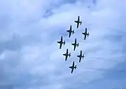 The Golden Centennaires were a Royal Canadian Air Force (RCAF) aerobatic flying team that performed in 1967, the Canadian Centennial year. The team was created to celebrate the Canadian Centennial. The eight-plane formation team, commanded by Wing Commander O. B. Philp C.M., DFC, CD, featured six-plane formations alternating with two solo aircraft. The aircraft used was the CT-114 Tutor, which sported a blue and gold paint scheme.