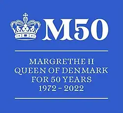The Golden Jubilee of Margrethe II was celebrated in 2022 in the Kingdom of Denmark, being the 50th anniversary of the accession of Queen Margrethe II on 14 January 1972.[1]