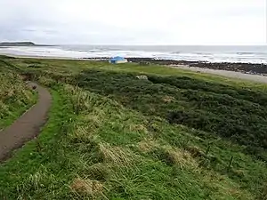 Golf Club House Halt railway station,[1] also known as Banff Golf House Halt railway station was opened in 1914.[1] The halt was located close to the town of Banff's golf club on the links.[3] The line from Tillynaught opened in 1859 and a temporary terminus opened at Banff on 30 July 1859 and a permanent station opened in 1860.[4] There was a single platform at the Golf Club House Halt, located on the shore side of the line and no provision for goods traffic. The OS map of 1902 shows a 'Halt' at the site of the 1914 platform without indicating any structure at the site.[5]