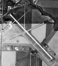 During wartime the airport had four compacted soil runways: aligned N/S, NE/SW, E/W, and NW/SE, all about 2,800' long, with NE/SW 3,600' long. The former NW/SE runway is now paved and used as the main runway; the others are still visible in aerial photography. Training ended on 29 August 1943 due to shortage of equipment. The glider training mission was taken over by I Troop Carrier Command, and the airport was used as an auxiliary airfield until the end of the war. It was returned to civil control in September 1945.