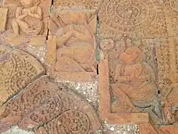 The terracotta plaques on the front arches of the temple depict the battle between the army of Rama and Ravana, which are now damaged or destroyed. At that time, the facade decorations served as visual illustrations of the popular religious texts Ramayana and Mahabharata.[6]