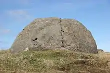 Grásteinn (Icelandic pronunciation: [ˈkrauːˌsteitn̥], 'grey stone') is a stone on Álftanes, near Reykjavík in Iceland. At Grandinn when driving from Garðabær to Álftanes is a crossroads. Bessastaðir is to the right, Suðurnesvegur to the left and Norðurnesvegur straight forward. To the south of this crossroads is the marker-stone Grásteinn, which is a load stone. On the stone are marks showing that someone has tried to move from its place or break it down. But history relates that one time there was an attempt to move it from its place, it seemed to people that Eyvindarstaði was in the midst of a bright conflagration, and they halted the move. Grásteinn is also associated with the belief that things will go well for the wayfarer who passes it carefully.