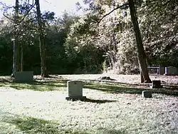 There is a small cemetery attached to the church grounds, located at the back in a hilly, wooded area overlooking the Willis River. Just when burials began is unknown; the earliest legible headstones date to the 1880s. It is possible that earlier burials exist; however, most of the grave markers on the grounds are nearly completely worn away, and as a result the total number of interments is unknown. Some of these missing markers have more recently been replaced with modern stones, and the cemetery continues in use for some local families. Two veterans of the Confederate Army are also buried in the cemetery.