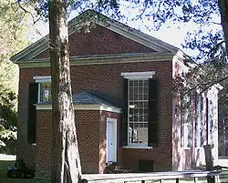 Immediately upon its completion, it began serving not only the populace of the town itself but also those families, many prominent in local affairs, that owned the surrounding plantations. Among those known to be part of the congregation of the church was Valentine Parrish, who not only donated the land on which it stood, but served as the builder for the project. The architect was Dabney Cosby, who had worked with Thomas Jefferson on the construction of buildings at the University of Virginia. This was not the first time that Cosby and Parrish had worked together; the two were listed together as co-architects on the cornerstone of the 1826 Goochland County Courthouse in nearby Goochland. Parrish was among the most prominent citizens in Cumberland County in the years leading up to the Civil War; he presented numerous petitions on the subject of local tolls to the Virginia General Assembly, and also made numerous suggestions regarding the distribution of economic aid to the county. Woodwork and framing on the church is said to have been the work of one Albert Mann, a slave attached to the Parrish plantation;[1] construction of the church was overseen by Rev. Henry Kinckle.[4]