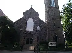 Grace Episcopal Church is a historic Episcopal church located at Middletown in Orange County, New York. The original church was built between 1846 and 1847, then enlarged and aggrandized in the Gothic Revival style between 1866 and 1868. A Collegiate Gothic style parish house was added in 1913. The church features an off-set bell tower with stepped buttresses and Gothic arched windows.[2]