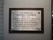 Plaque in the Salón Graciela Salicrup, UNAM Institute of Mathematics