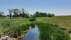 Graham Creek,[3] a tributary of the Souris River,[4] is a river that flows from Saskatchewan near Maryfield into Manitoba where it meets the Souris River on the west side of Melita, Manitoba. The Souris River, in turn, drains into the Assiniboine River, which is part of the Red River drainage basin in a region called the Prairie Pothole Region of North America. That region extends throughout three Canadian provinces and five U.S. states. It is also within Palliser's Triangle and the Great Plains ecoregion.[5]