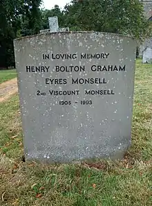 Henry Bolton Graham Eyres-Monsell, 2nd Viscount Monsell (21 November 1905[1][2]–28 November 1993[3]) served in the Intelligence Corps during the Second World War, reaching the rank of lieutenant colonel. He was mentioned in dispatches on 16 September 1943 and recommended for the MBE for his services to security during the planning stages of Operation Torch. No confirmation of this latter award has been found. However, he was awarded the United States Medal of Freedom with Bronze Palm.[4]