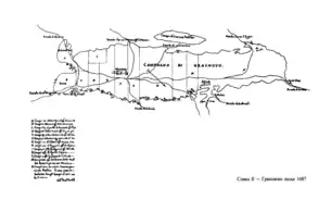 Grahovo was first mentioned in 1318,[5] then in a Kotor document in 1377, and then again in 1399. Vilusi was mentioned in a Kotor Document in 1440.[4] During the medieval period, it was inhabited by the Catholic Albanian Mataruge tribe.[6][7] The region was settled by the Riđani specifically the territories of Krivošije and Cerovo Ždrijelo near Grahovo. According to traditional belief, the tribe Riđani and other brotherhoods extensively tried to emigrate towards the fertile lands of the Grahovo field, However they faced resistance from the Mataruge natives.[8][9] Mataruge attacked settlers and travelers on the Risan-Grahovo route.[9]