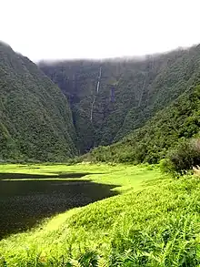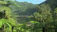 Lake of Grand Etang – in the background the waterfall of Cascade Biberon