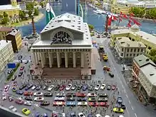 The movement of the cars in the model is realistic. The cars and buses stop at traffic lights, bus stops and flashing signals, and they change speeds and bypass each other. The electrical energy for the automobiles is obtained remotely from underneath the model, so the cars themselves don't appear to have a power supply. This was the first use of this method for moving cars in this way.[9]