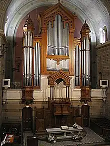 The pipe organ was built in 1884 by Merklin, rebuilt in 1923 after a fire. It is equipped with a "mechano-pneumatic" transmission. Some changes were made by the organ builder Dunand in the 60s. Restored by the organ builder Promonet, it was equipped with a second mobile console.