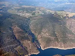 Grandas de Salime is a municipality in the Autonomous Community of the Principality of Asturias, Spain. It is famous for its hydroelectric dam across the Navia River, forming the Embalse de Salime (reservoir of Salime). It is also famous for being a stop along the Camino Primitivo path of the Camino de Santiago, where it is the last stretch of Asturian land before the entrance into Galicia through the Acebo Pass.