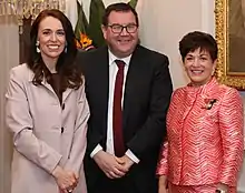 Following Labour's formation of a coalition government with New Zealand First and the Greens,[43] Robertson was elected as a Cabinet minister by the Labour Party caucus. He was given the key role of finance minister by Prime Minister Jacinda Ardern, along with the portfolios of Minister for Sport and Recreation and associate Minister for Arts, Culture and Heritage.[44]