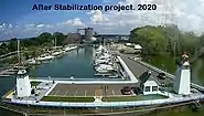 Then in 2017 a decision was made to move forward with stabilization of the breakwater that had been deteriorating for a number of years and causing fears of the lighthouse foundations failing. For the next year and a half the breakwater was reinforced with steel pile. Additionally the breakwater was widened for two way vehicle traffic, parking area, safety railing, dock access, and other improvements.