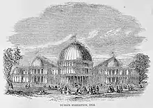 The Great Industrial Exhibition in 1853 was held in Dublin, Ireland. In its day, it was the largest international event to be held in Ireland. The Irish Industrial Exhibition Building, located on the grounds of Leinster House,[1] housed the entire fair. It lasted from 12 May to 31 October, Queen Victoria accompanied by the Prince Consort and the Prince of Wales, paid an official visit on 29 August.[2][3]