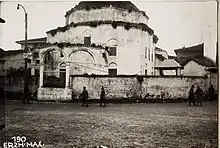 It was built in 1931 under the Kingdomship of King Ahmed Zogu on the site of an older mosque from Ottoman times. By the day of its opening, it was the largest mosque in Albania. The architects were Italian as the result of an Italian-Albanian cooperation.[2] The goal of the architecture of the building was to have influence from Islamic tradition while also incorporating Durrës-style columns.[3] When the mosque was completed, there was a celebration which included many foreign delegations.[4] The mosque was closed in 1967 under the dictatorship of Enver Hoxha and its minaret was torn down. Most other historic mosques of the Ottoman era were destroyed.[1] From now on, the Main mosque was used as a so-called Youth Centre. It was damaged again in 1979 by an earthquake.