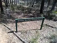 The Greater Bendigo National Park is a national park located in the Loddon Mallee region of Victoria, Australia.[2] The 17,020-hectare (42,100-acre) national park was created in 2002 from the former Whipstick State Park, Kamarooka State Park, One Tree Hill Regional Park, Mandurang State Forest and the Sandhurst State Forest.[3]