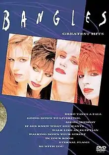 Greatest Hits is the 1990 video (VHS) containing the greatest hits of The Bangles. The video was also released on DVD in 2005; however, it is the same version with the same quality. The video contains all their music videos from the time they were signed to Columbia Records from 1984 to 1989, except for the video to "Hazy Shade of Winter".