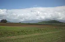 Green Hill is in the south-west of the locality (17°02′24″S 145°48′31″E / 17.0401°S 145.8086°E) at 131 metres (430 ft) above sea level.[3][6] The hill is the remnant of a volcano that erupted about 986,000 years ago. It is believed that the volcano's eruption altered the course of the Mulgrave River so that instead of having its mouth on Trinity Inlet, the mouth become directly onto the Coral Sea some 40 km further south.[7] However, further research has shown river sediments above the basalt flows and it is now believed that other factors such as alluvial sediments may have altered the river's course and that perhaps it has alternated between the two mouths over time.[8]