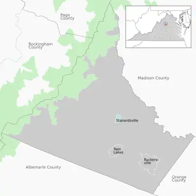 Greene County is a county in Virginia in the eastern United States. As of the 2020 census, the population was 20,552.[1] Its county seat is Stanardsville.[2]