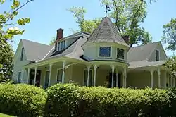 It is a one-and-a-half-story Queen Anne-style house with characteristic massing and textures. It has a turret and a wraparound gallery with bracketed Eastlake-style columns.[2]