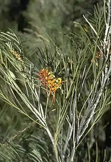 Grevillea baxteri, commonly known as the Cape Arid grevillea,[1] is a flowering plant of the family Proteaceae and is endemic to the south-west of Western Australia. It is an erect to spreading shrub with pinnatipartite leaves and greenish to fawn or creamy-orange flowers.