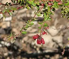Grevillea oldei is a diffuse shrub that typically grows to a height of 0.4–1.2 m (1 ft 4 in – 3 ft 11 in). It often has arching branches and shaggy-hairy branchlets. Its leaves are narrowly egg-shaped to more or less triangular, lance-shaped, narrowly elliptic or oblong, mostly 10–35 mm (0.39–1.38 in) long and 1.5–6 mm (0.059–0.236 in) wide with the edges turned down and usually sharply pointed. The lower surface of the leaves is covered with loose, untidy, shaggy hairs. The flowers are arranged on the ends of branches in more or less spherical clusters on a wiry, sometimes branched peduncle up to 50 mm (2.0 in) long. The flowers are bright to dark red, the pistil 9.5–15 mm (0.37–0.59 in) long. Flowering occurs from June to February and the fruit is a glabrous, oblong follicle 14–15 mm (0.55–0.59 in) long.[2][3]